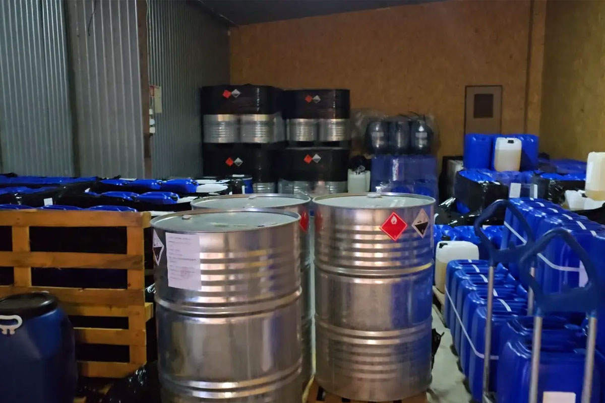 Mehr als 120.000 Liter hochgiftiger Produktionsabfall wurde gefunden. (Bildquelle: Europol)