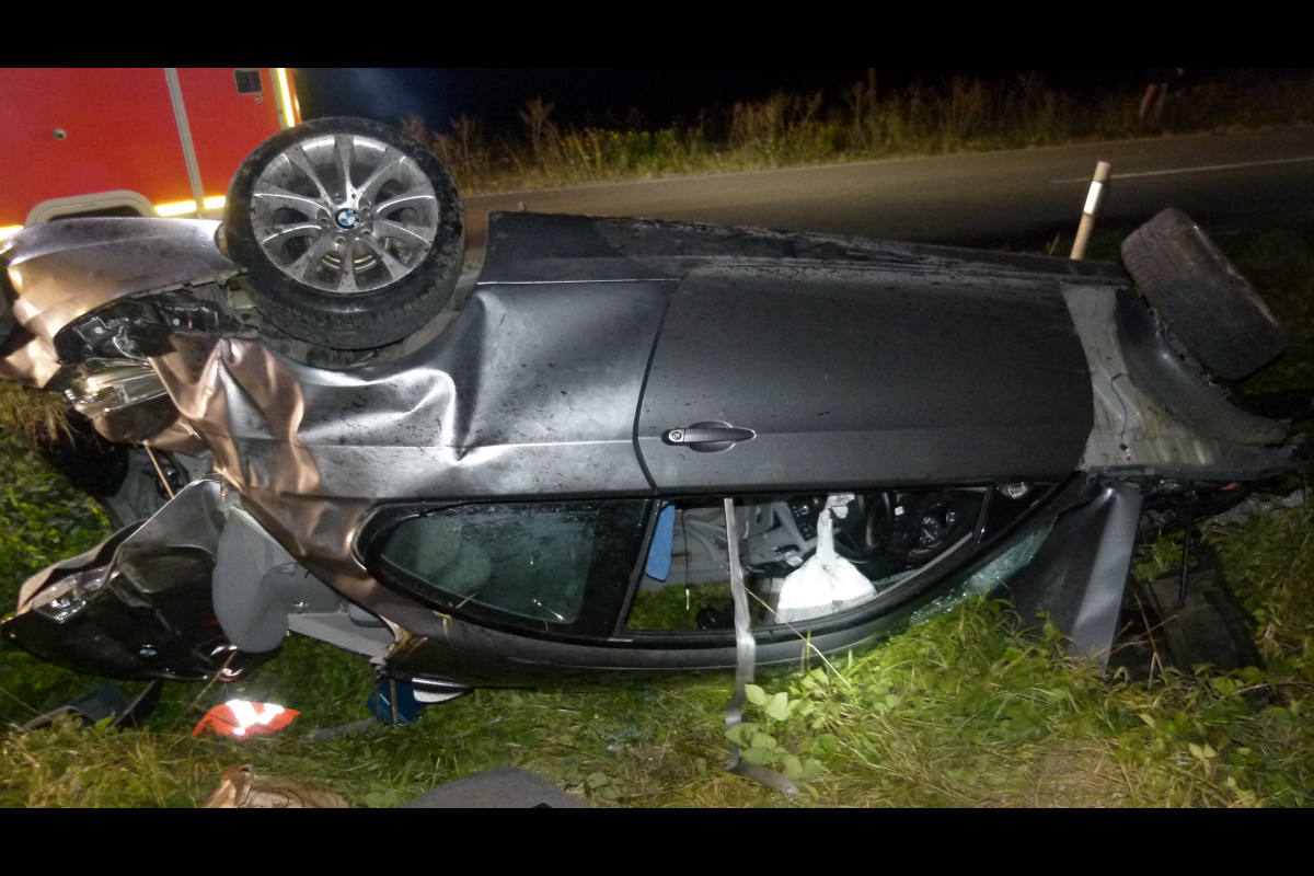Der Vlothoer befuhr am Donnerstagabend, gegen Mitternacht, mit seinem BMW die Holtruper Straße in Richtung Uffeln. Kurz nachdem er die Ortsdurchfahrt in Holtrup passiert hatte, touchierte er zunächst mit dem linken Außenspiegel ein Verkehrsschild und kam daraufhin nach rechts von der Fahrbahn ab. Dort überschlug sich der PKW mehrfach und blieb auf dem Dach im Seitengraben liegen.