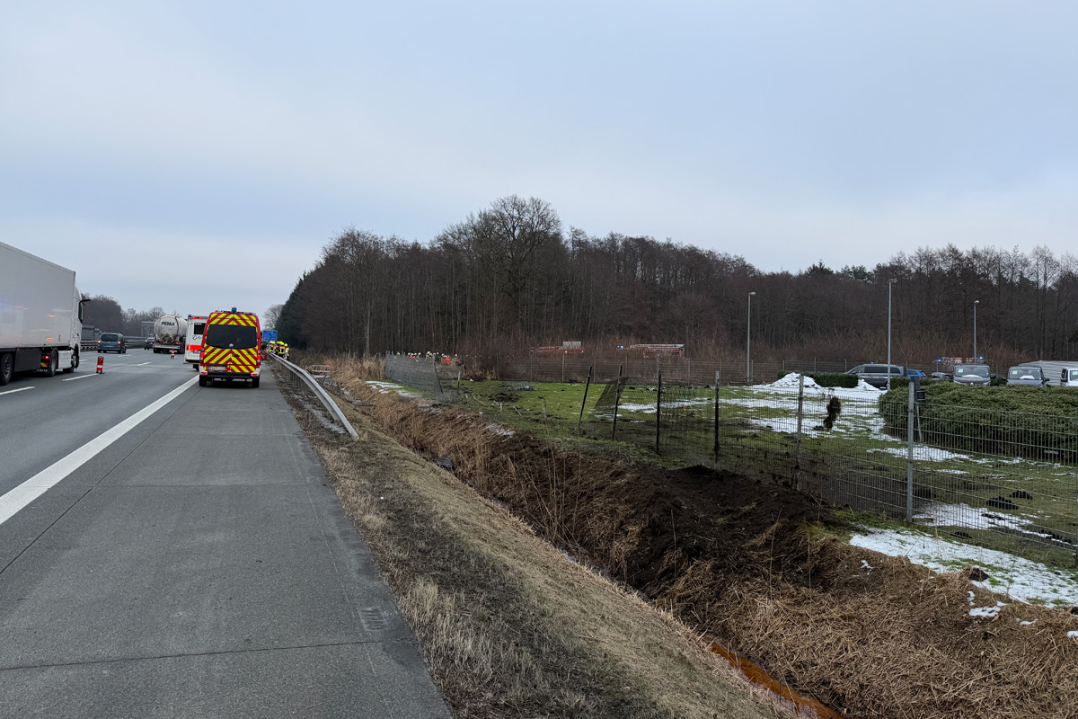Am Montagnachmittag, den 09.02.2026, wurden um 15:34 Uhr zahlreiche Einsatzkräfte von Feuerwehr, Rettungsdienst und Polizei zu einem schweren Verkehrsunfall auf der BAB 1 in Fahrtrichtung Hamburg, auf Höhe der Anschlussstelle Bockel, alarmiert.