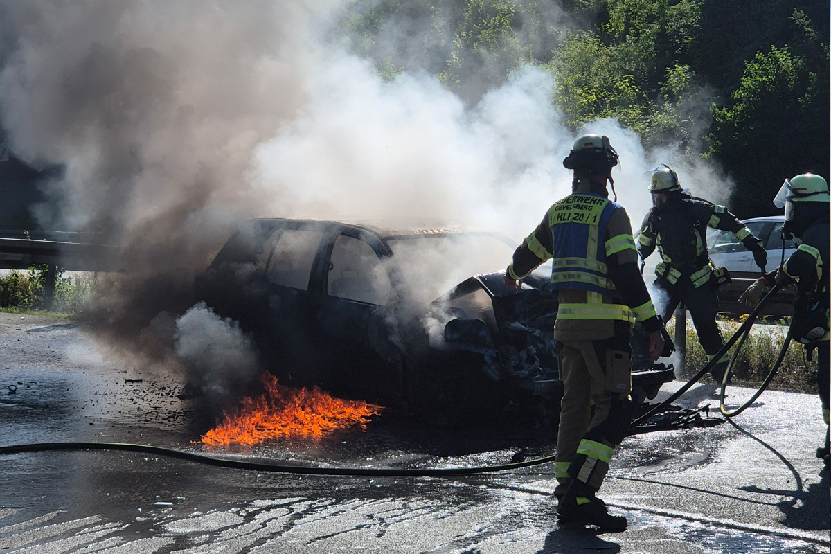 Am Dienstagmorgen, den 2. Juli 2025, kam es auf der A1 bei Gevelsberg zu einem Unfall mit Fahrzeugbrand. Ein Auto stand in Vollbrand, der Fahrer wurde verletzt. Die Autobahn war zeitweise voll gesperrt.