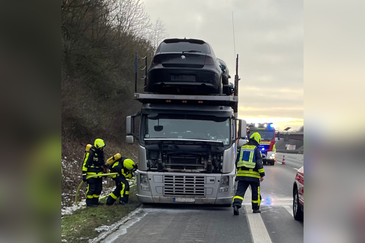 Vor Ort bestätigten die ersteintreffenden Kräfte einen Brand im Bereich des Motorraumes eines Aututransporter-LKW. Der Fahrer hatte das Fahrzeug auf dem Standstreifen zum Halten gebracht und bereits erste Löschversuche mit Pulverlöschern eingeleitet. Der Brand konnte von einem Trupp unter Atemschutz schnell mit einem C-Rohr gelöscht werden. Der LKW war in Folge des Brandes nicht mehr fahrbereit. Nach einer Kontrolle mit einer Wärmebildkamera sowie der Kühlung des betroffenen Bereiches wurde die Einsatzstelle an die Autobahnpolizei und ein Abschleppunternehmen übergeben.