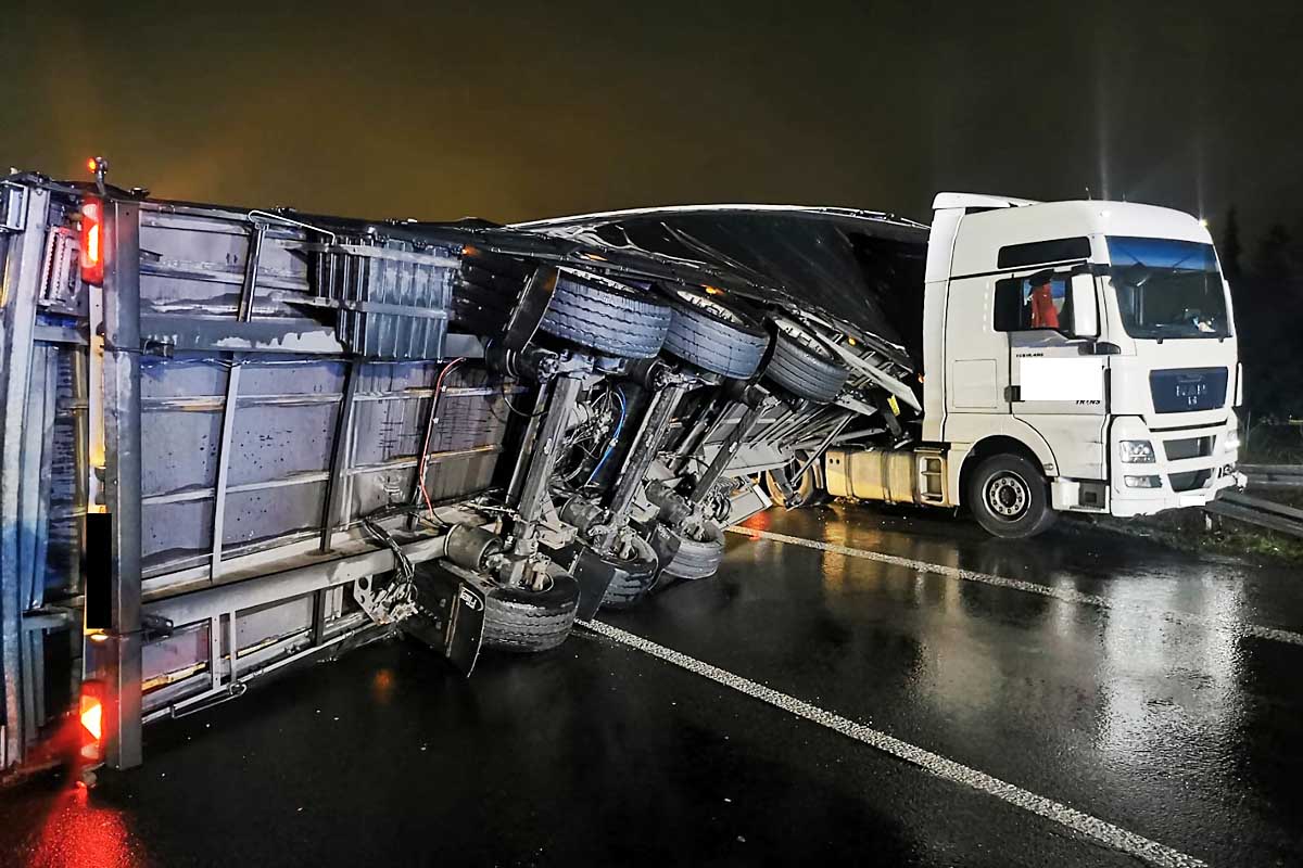 Um 18.50 Uhr wurden die Einsatzkräfte zur Autobahn 1 gerufen. Kurz hinter dem Autobahnkreuz Wuppertal Nord in Fahrtrichtung Köln war ein Sattelauflieger umgekippt.