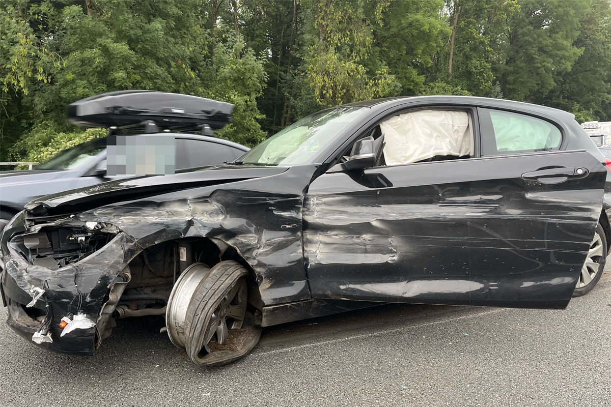Der linke Fahrstreifen musste für etwa eine Stunde gesperrt werden. Der schwer beschädigte BMW wurde abgeschleppt. Es entstand ein Sachschaden in Höhe von etwa 10.600 Euro.