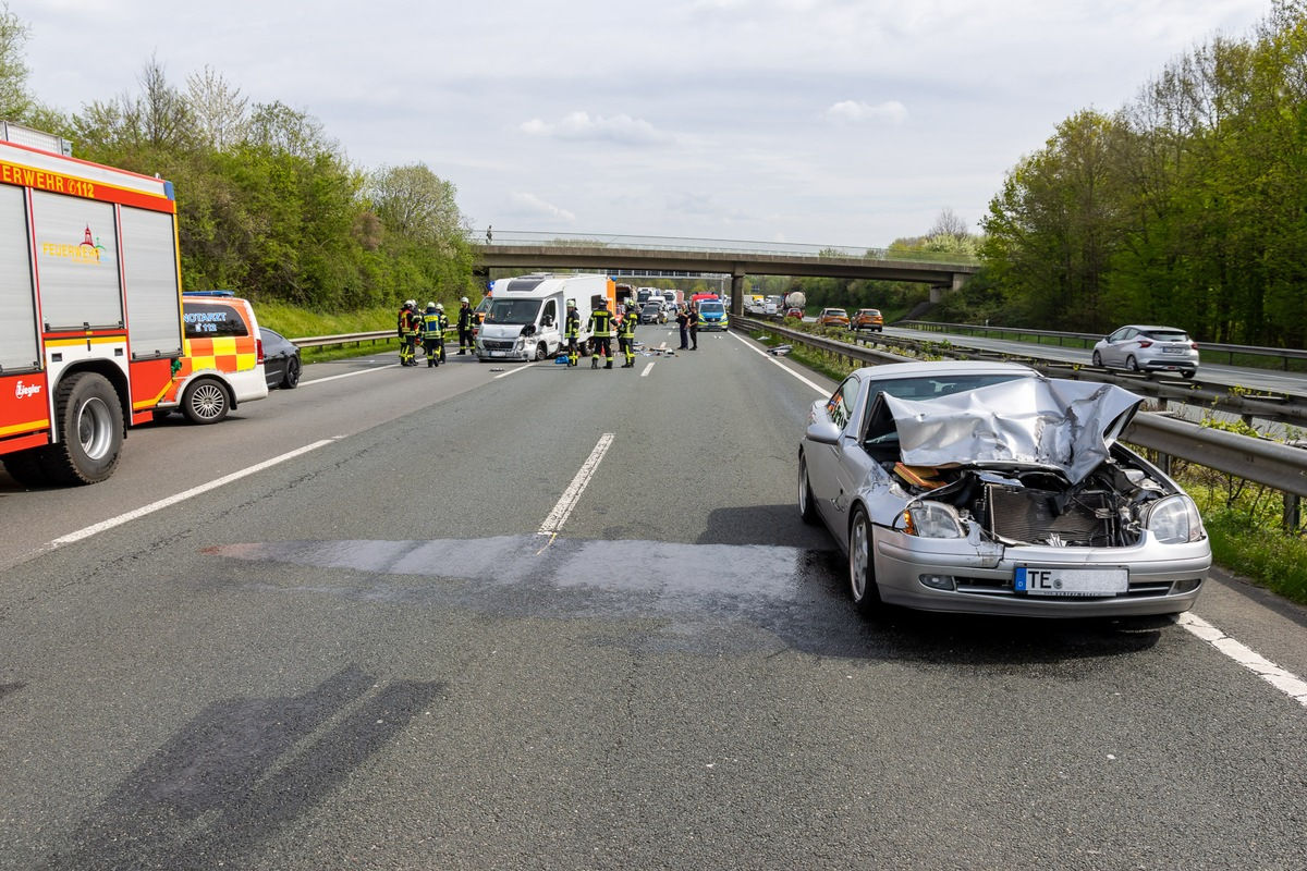 Das Wohnmobil war in der Folge in die Leitplanken am rechten Fahrbahnrand eingeschlagen, es kam auf dem rechten und mittleren Fahrstreifen zum Halt. Der Mercedes stand einige Meter weiter auf dem linken Fahrstreifen.