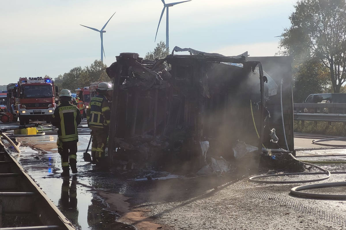A27 bei Bremen – Sattelzug nach schwerem Unfall ausgebrannt