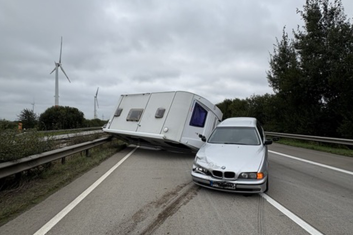 Beim Überholen geriet der Wohnanhänger ins Schleudern. (Bildquelle: Polizeiinspektion Cuxhaven)