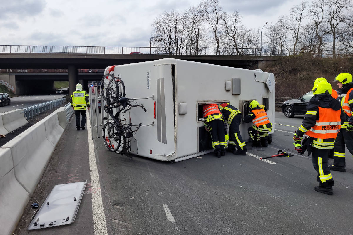 Wohnmobil verunfallt auf der A3 bei Oberhausen (Bildquelle: Feuerwehr Oberhausen)