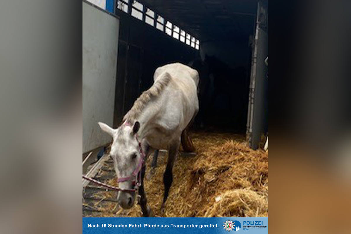 Pferde nach 19 Stunden Fahrt aus Transporter gerettet (Polizei Köln)