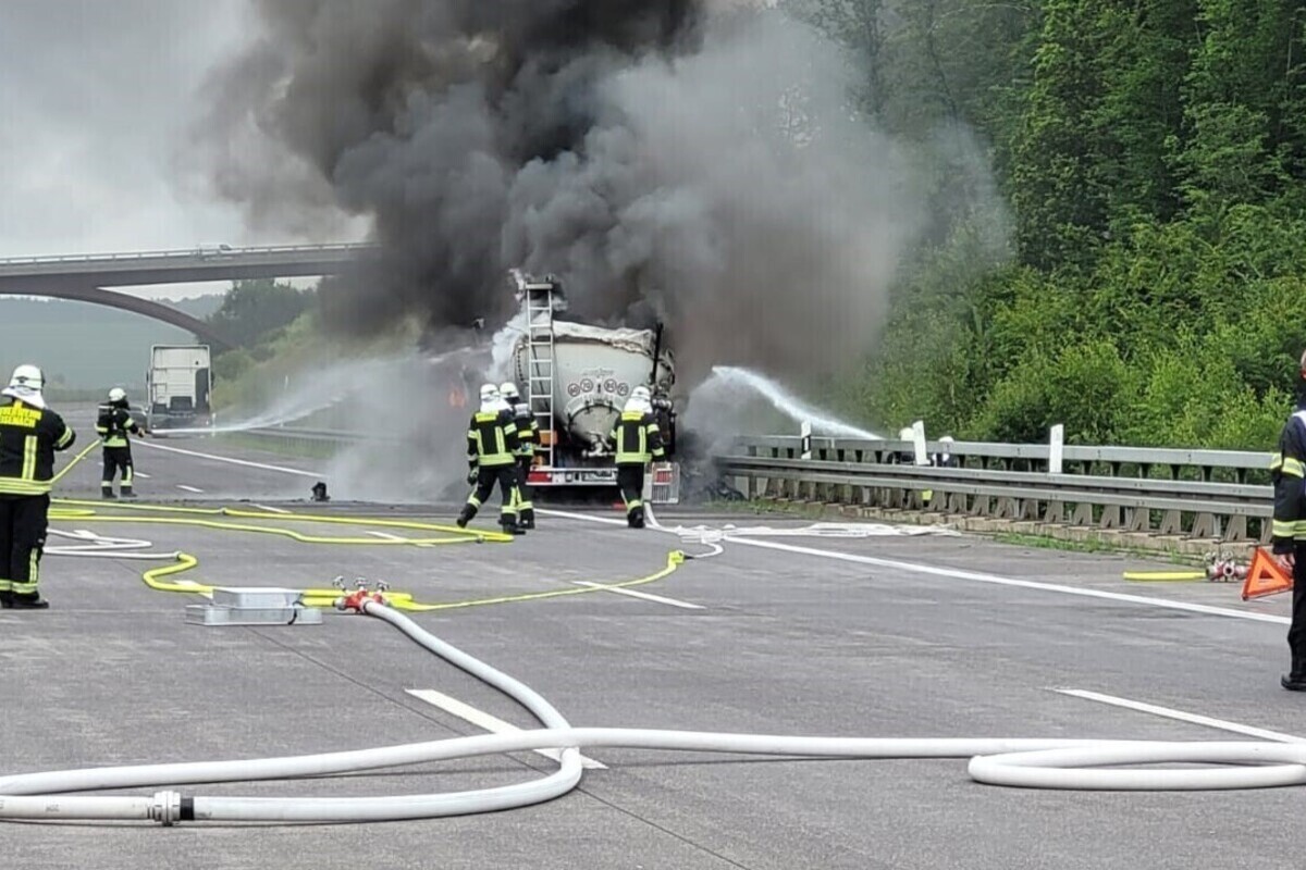Zahlreiche Kräfte der Polizei, der Feuerwehr, des Rettungsdienstes und des Katastrophenschutzes sind derzeit im Einsatz. Nach ersten Erkenntnissen fuhr der polnische Fahrer des Sattelzuges aufgrund eines Reifenschadens auf den Standstreifen. Dabei bemerkte er den Brand seines Aufliegers. Er koppelte diesen von der Zugmaschine ab und fuhr mit der Zugmaschine ca. 100 Meter weiter, um sich vor dem Brand zu schützen.