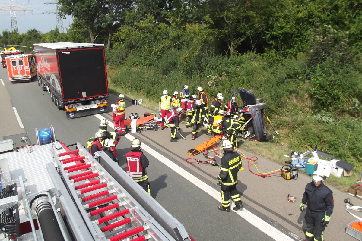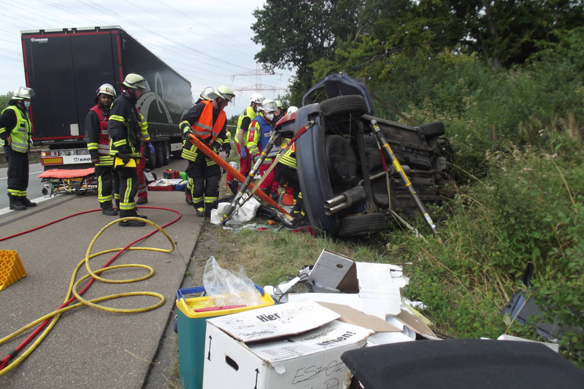 Am Donnerstagnachmittag ereignete sich gegen 15:00 Uhr auf der Autobahn A45 Richtung Hannover ein Verkehrsunfall, in dessen Folge ein Kleinwagen nach einem Überschlag auf der Seite liegend zum stehen kam.