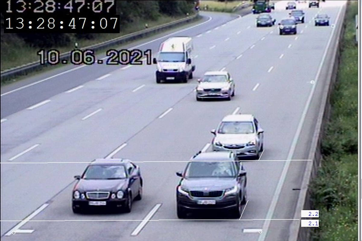 Ein weiterer Fahrer unterschritt nicht nur den Sicherheitsabstand deutlich, er bediente dabei auch noch sein Mobiltelefon. Neben den 100 Euro und einem Punkt für die Handynutzung während der Fahrt, kommen noch 75 Euro und 1 weiterer Punkt für das Unterschreiten des Sicherheitsabstands um 5/10 des halben Tachowertes bei mehr als 100 km/h hinzu.