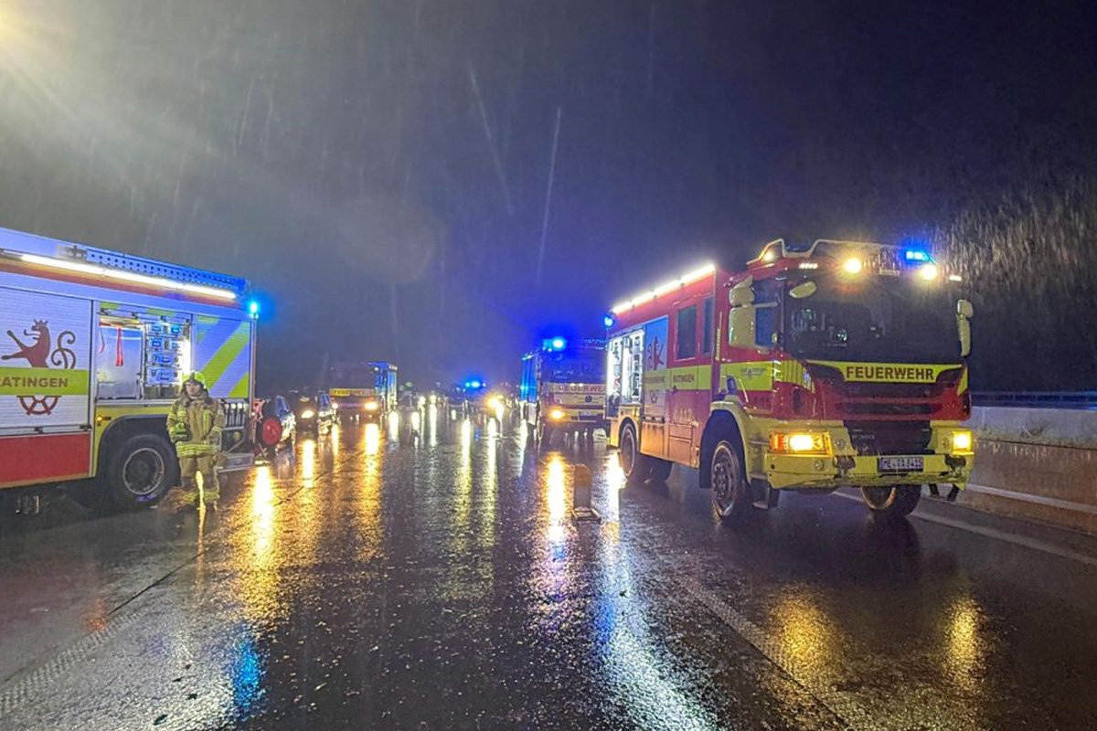 Bei Eintreffen der Einsatzkräfte stand der Verkehr vollständig still. Auf der linken und mittleren Fahrspur hatte sich ein deutlicher Wasserrückstau gebildet. Insgesamt waren sechs Personen betroffen, zwei davon wurden leicht verletzt und vor Ort medizinisch versorgt. Ein Transport in ein Krankenhaus war nicht erforderlich.