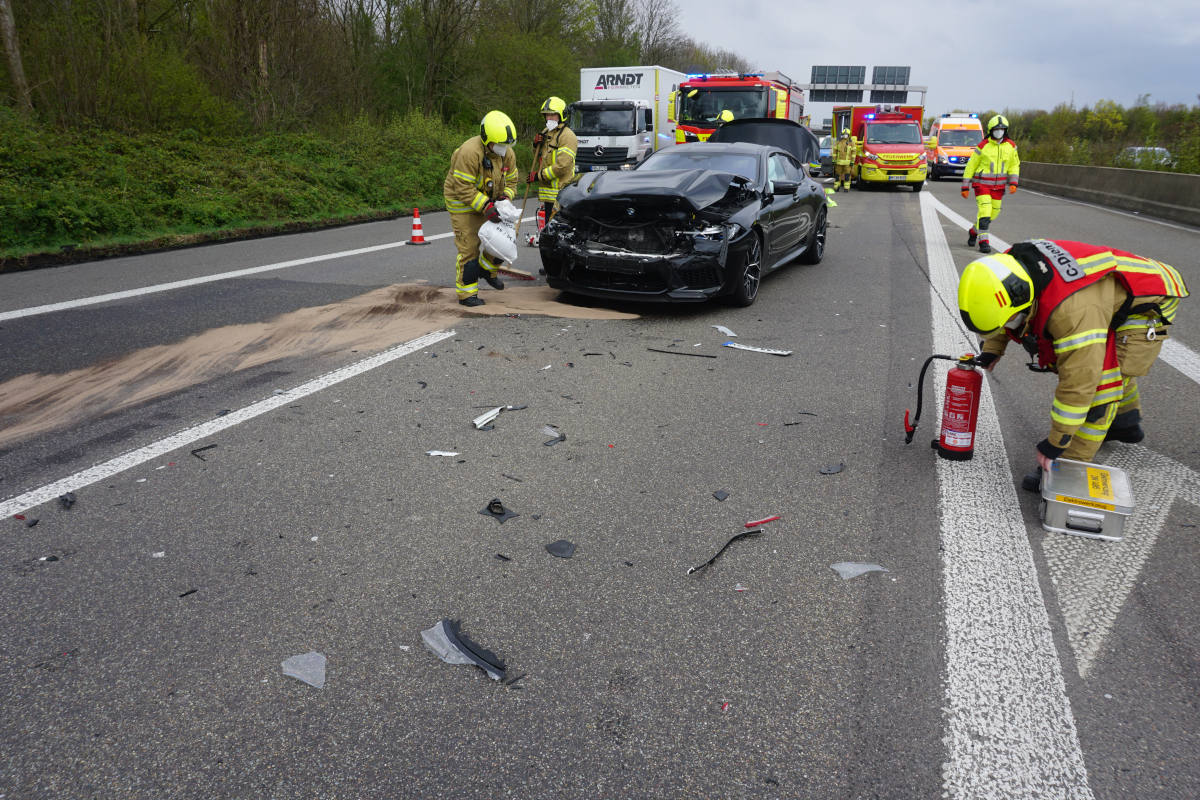 Verkehrsunfall im Autobahnkreuz Düsseldorf Nord mit drei Verletzten (Bildquelle: Feuerwehr Ratingen)