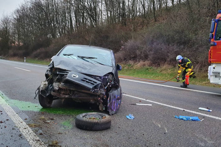 Für die Unfallaufnahme durch die Polizei und die Bergung der Fahrzeuge ist die BAB 535 aktuell noch komplett gesperrt.