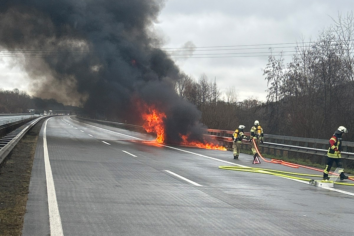 Der Fahrzeugführer schaffte es noch, das Fahrzeug auf den Standstreifen zu lenken und das Fahrzeug zu verlassen. Wenig später stand das Fahrzeug schon in Vollbrand.