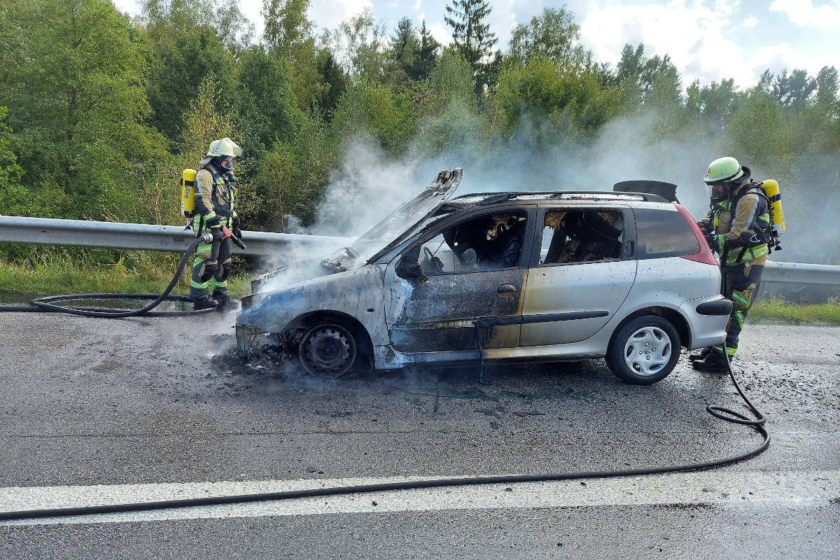Ein Peugeot begann aus bislang ungeklärter Ursache im Motorraum zu brennen und brannte dort auch vollständig aus. Die freiwillige Feuerwehr Ramstein hatte das Fahrzeug beim Eintreffen der Streife der Autobahnpolizei Kaiserslautern bereits gelöscht. Verletzt wurde niemand.
