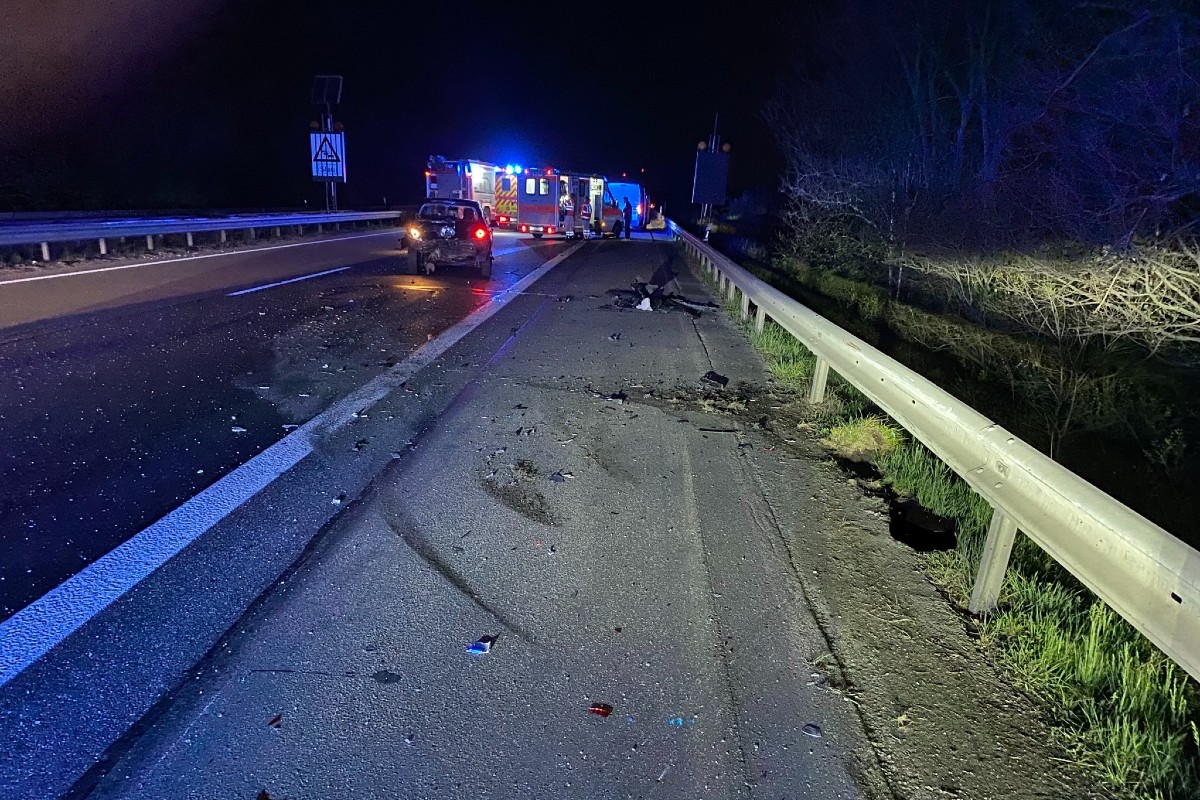 Am Dienstag, den 04.04.2023, kam es gegen 21:50 Uhr auf der A61, in Richtung Norden, etwa bei Kilometer 356, zu einem Verkehrsunfall mit zwei beteiligten Fahrzeugen. Hierbei fuhr ein 28-jähriger Mann aus dem Kreis Bad Dürkheim mit einem Peugeot Boxer einer 41-jährigen Frankenthalerin ins Fahrzeugheck. Aufgrund des Zusammenstoßes wurde der Kleinwagen der Frankenthalerin um 90 Grad gedreht und prallte frontal in die rechte Schutzplanke, bevor er auf dem rechten Fahrstreifen zum Stehen kam.