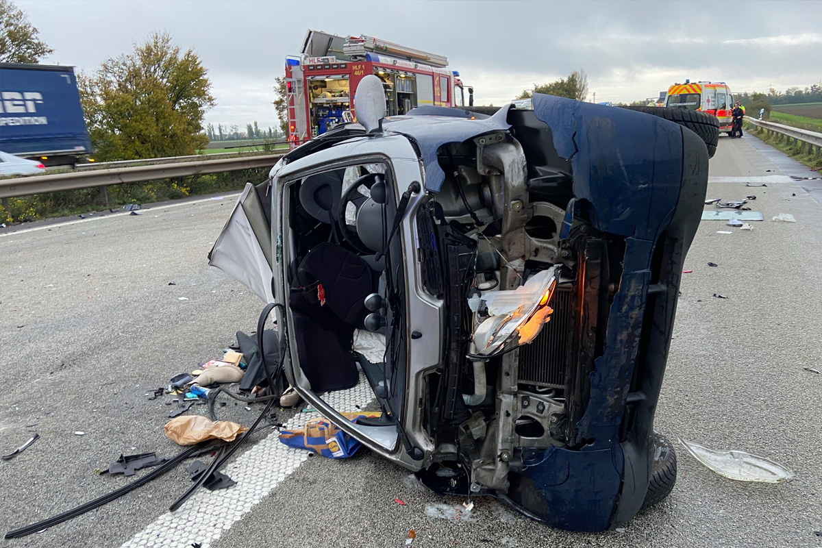 Bei einem schweren Verkehrsunfall auf der A61 bei Lambsheim überschlug sich am Mittwochmorgen ein Smart nach einem Auffahrunfall. Zwei Personen wurden verletzt, darunter eine Frau schwer.