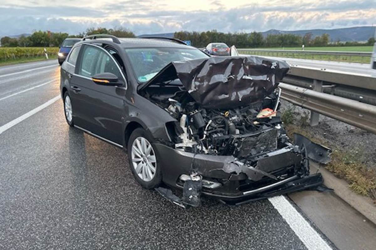 Am Dienstagmorgen, 21.10.2025, kam es auf der A65 bei Haßloch (RP) zu einem Auffahrunfall. Ein 18-jähriger VW-Passat-Fahrer prallte auf einen abbremsenden VW Polo. Beide Fahrzeuge wurden stark beschädigt, die Fahrbahn musste voll gesperrt werden. Beide Fahrer kamen vorsorglich ins Krankenhaus.