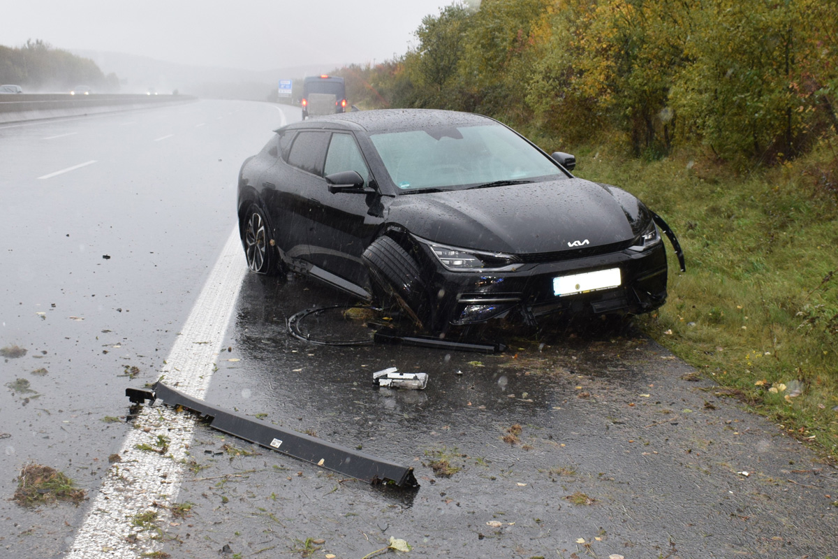 Ein 43-Jähriger aus dem Landkreis Tübingen (Baden-Württemberg) befuhr die BAB 7 mit seinem KIA EV6 in Richtung Hannover. Mit im Fahrzeug befanden sich eine 41-jährige Beifahrerin und zwei Kinder im Alter von sechs und elf Jahren.