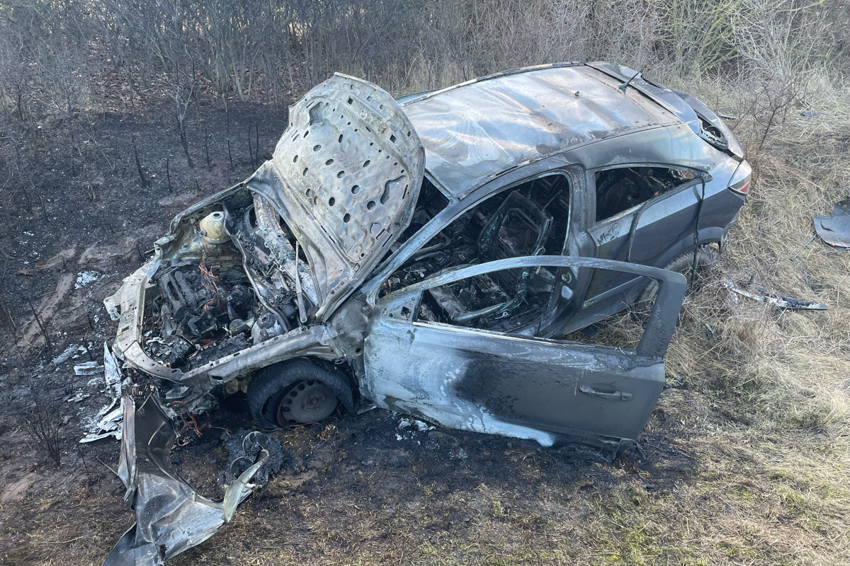 Infolge des Unfalls fing das Fahrzeug Feuer und brannte vollständig aus.