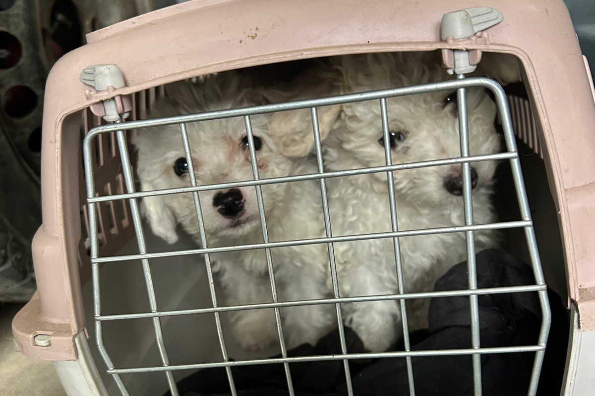 Die Malteserwelpen wurden in zwei Katzentransportboxen auf der Ladefläche eines Sprinters transportiert. Zoll- und veterinärrechtliche Dokumente konnte der Fahrer für die Tiere nicht vorweisen.