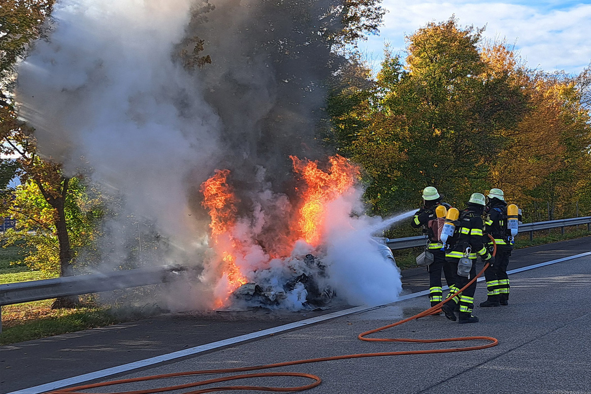 Während der Löscharbeiten musste die A8 in Fahrtrichtung München vollständig gesperrt werden. Nach rund 40 Minuten war das Feuer gelöscht.