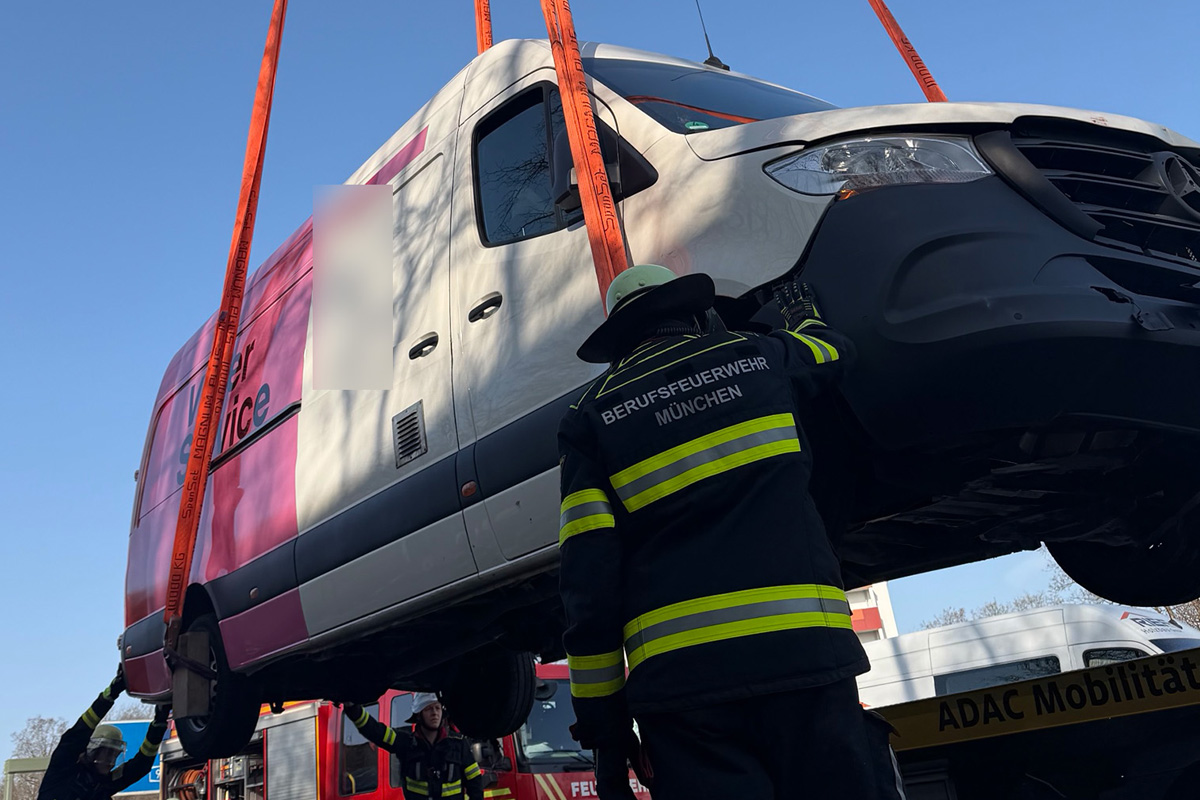 Die Bergung des verunfallten Transporters war sehr aufwändig. (Bildquelle: Feuerwehr München)