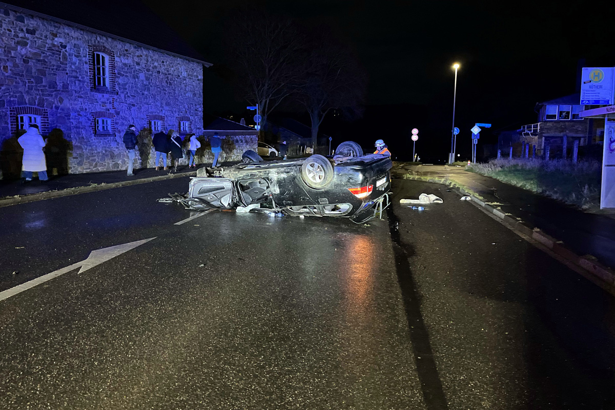 In der Nacht zum 07.12.2025 überschlug sich ein Auto auf der Aachener Straße in Aachen-Nütheim (NW). Zwei 18-Jährige wurden verletzt, einer davon schwer. Der Fahrer verließ zunächst die Unfallstelle und stand später unter Alkoholverdacht. Die Polizei stellte seinen Führerschein sicher.