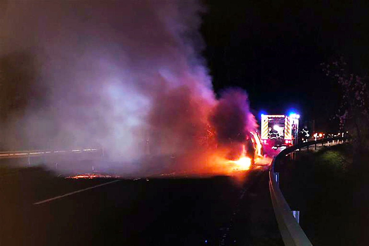 Am Mittwoch, dem 20.01.2021 kam es gg. 22.40 h auf der B50, im Bereich Albach, zu einem Pkw-Brand.
