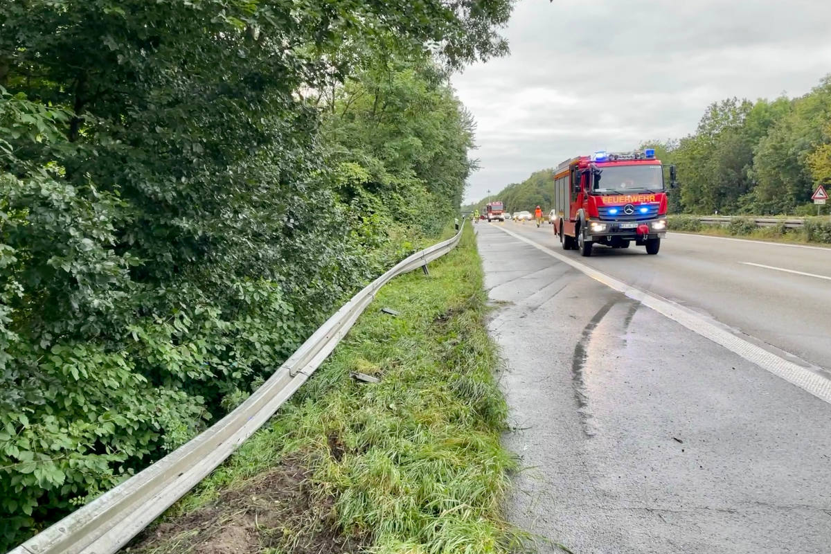 Rund zwei Stunden später wurden die Einsatzkräfte erneut mit demselben Einsatzstichwort in Fahrtrichtung Krefeld alarmiert. Kurz vor dem Rastplatz Leucht war es zu einem Unfall mit einem Pkw und Anhänger gekommen. Die Einsatzstelle wurde erneut gegen den fließenden Verkehr abgesperrt, auslaufende Betriebsmittel abgestreut und das Bindemittel einer fachgerechten Entsorgung zugeführt.