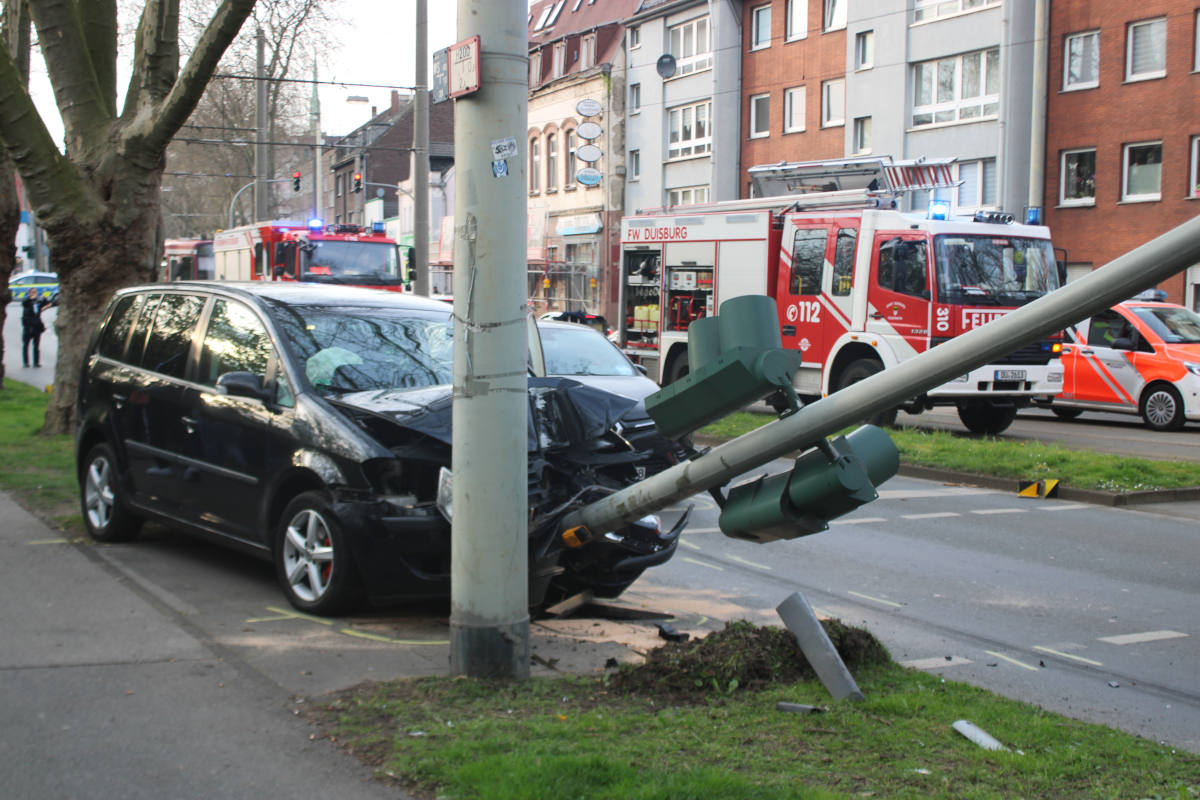 Alt-Hamborn – Gegen Ampel gefahren und in Bahnhaltestelle gelandet - Trümmerfeld nach Unfall