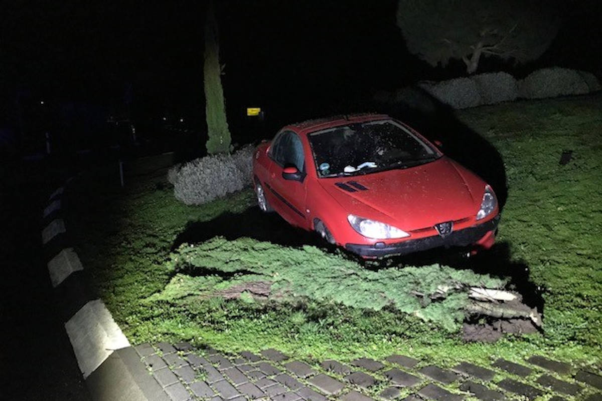 Das gemeldete Auto konnte schließlich verunfallt am Kreisverkehr in Altdorf festgestellt werden. Der 29-jährige Fahrer aus dem Rhein-Pfalz-Kreis ist mit dem hohen Bordstein sowie mehreren Büschen und einem Baum auf der Verkehrsinsel kollidiert und kam inmitten auf der Verkehrsinsel zum Stehen. Der Fahrer war aufgrund seiner Alkoholisierung nicht mal mehr in der Lage, einen Atemalkoholtest durchzuführen.