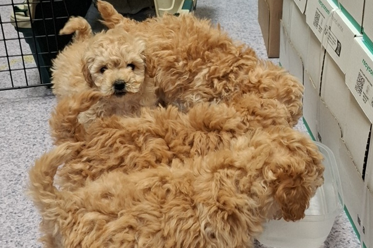 Während des Gesprächs mit dem rumänischen Fahrer ertönte aus dem Laderaum ein Fiepen. Der Zoll stellte daraufhin insgesamt vier augenscheinlich unverletzte Welpen der Hunderasse Maltipoo sicher.