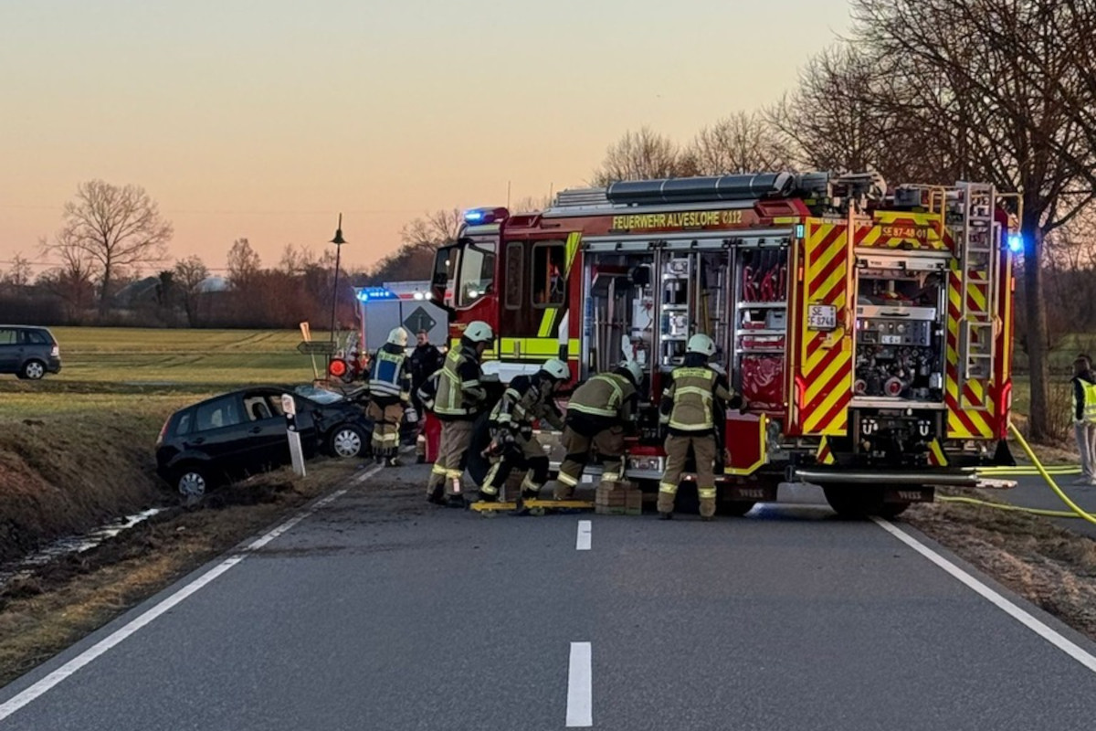 Am Mittwoch, 25. Februar 2026, kam es zwischen Alveslohe und Ellerau zu einem Unfall. Ein Pkw kam von der Fahrbahn ab und landete im Graben. Eine Person wurde verletzt und ins Krankenhaus gebracht.