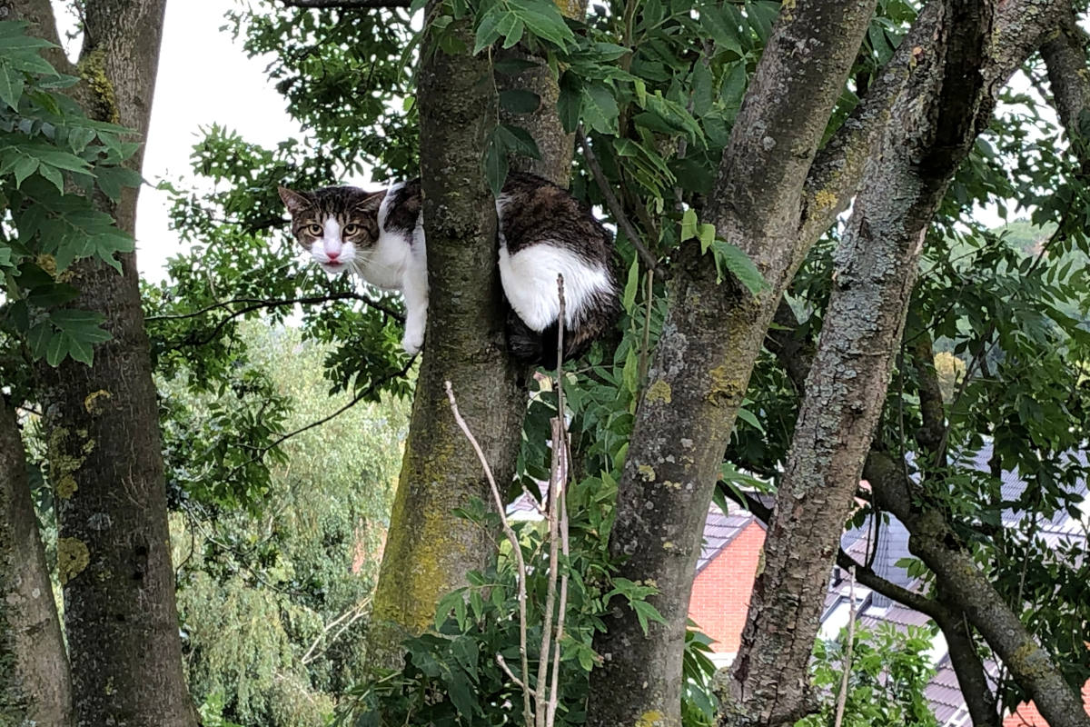 Er hörte das Miauen einer Katze schon seit mehreren Tagen. Nach genauer Suche fanden sie die Katze in einem hohen Baum im Böschungsbereich der Bahn. Da die Katze sich nicht selbständig aus ihrer misslichen Lage befreien konnte und die Feuerwehr mit ihren vorhandenen Mitteln nicht helfen konnte, wurde die Drehleiter des Löschzuges Xanten-Mitte zur Einsatzstelle nachalarmiert.