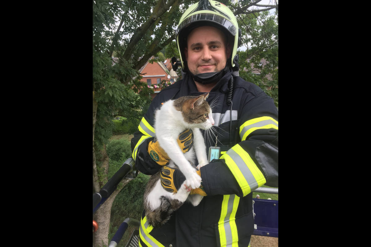 Katze und ihr Retter (Bildquelle: Feuerwehr Xanten)