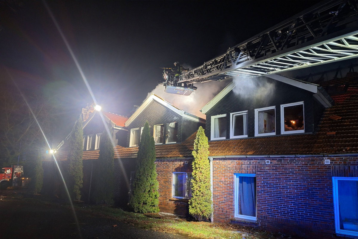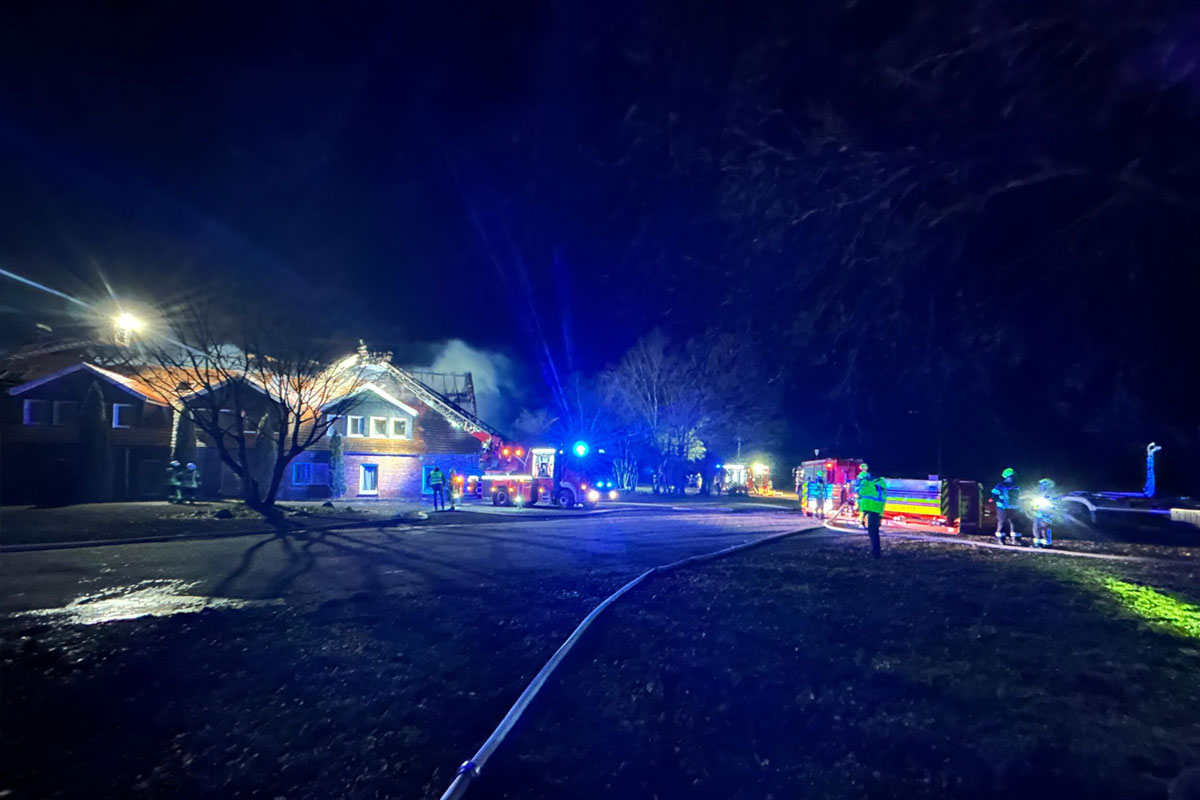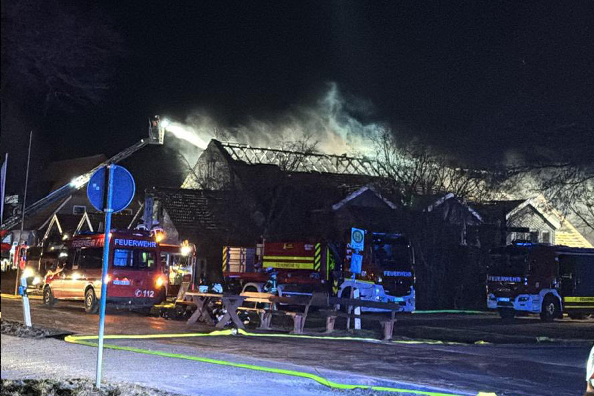 Apen (Niedersachsen) zu einem Großbrand in dem beliebten Biker-Hotel „Zur Schanze“ gekommen.