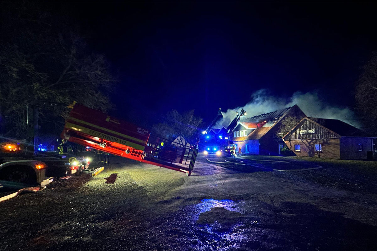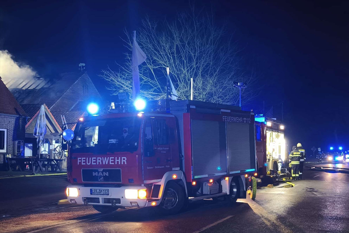 Ein Großbrand hat am Donnerstagabend ein bekanntes Biker-Hotel in Apen (Landkreis Ammerland) vollständig zerstört. Rund 180 Einsatzkräfte kämpften stundenlang gegen die Flammen. Frost, Wind und schwierige Wasserversorgung erschwerten die Löscharbeiten erheblich. Verletzt wurde niemand.
