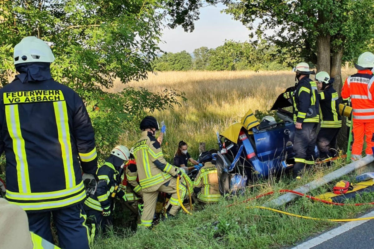 Mittwochmorgen gegen 7.10 Uhr wurden Feuerwehr und Rettungsdienst zu einem Verkehrsunfall auf die B8 zwischen Vierwinden und Mendt alarmiert. Ein PKW war von der Fahrbahn abgekommen und gegen einen Baum geprallt. Der Fahrer wurde dabei schwerverletzt in seinem Fahrzeug eingeklemmt.