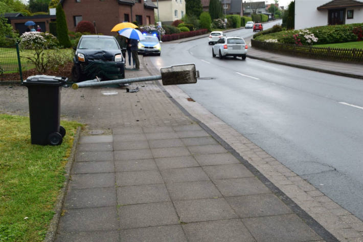 Am Montag (6.5.), um 17.35 Uhr, befuhr ein 59-Jähriger die regennasse Bielefelder Strasse stadteinwärts. In einer langgezogenen Linkskurve verlor der Mann aus Spenge aus bislang ungeklärter Ursache die Kontrolle über sein Fahrzeug. Seine unkontrollierte Fahrt führte auf den Gehweg und endete in einem Gartenzaun. Eine Strassenlaterne brachte den Ford Fusion schliesslich zum Stehen.
