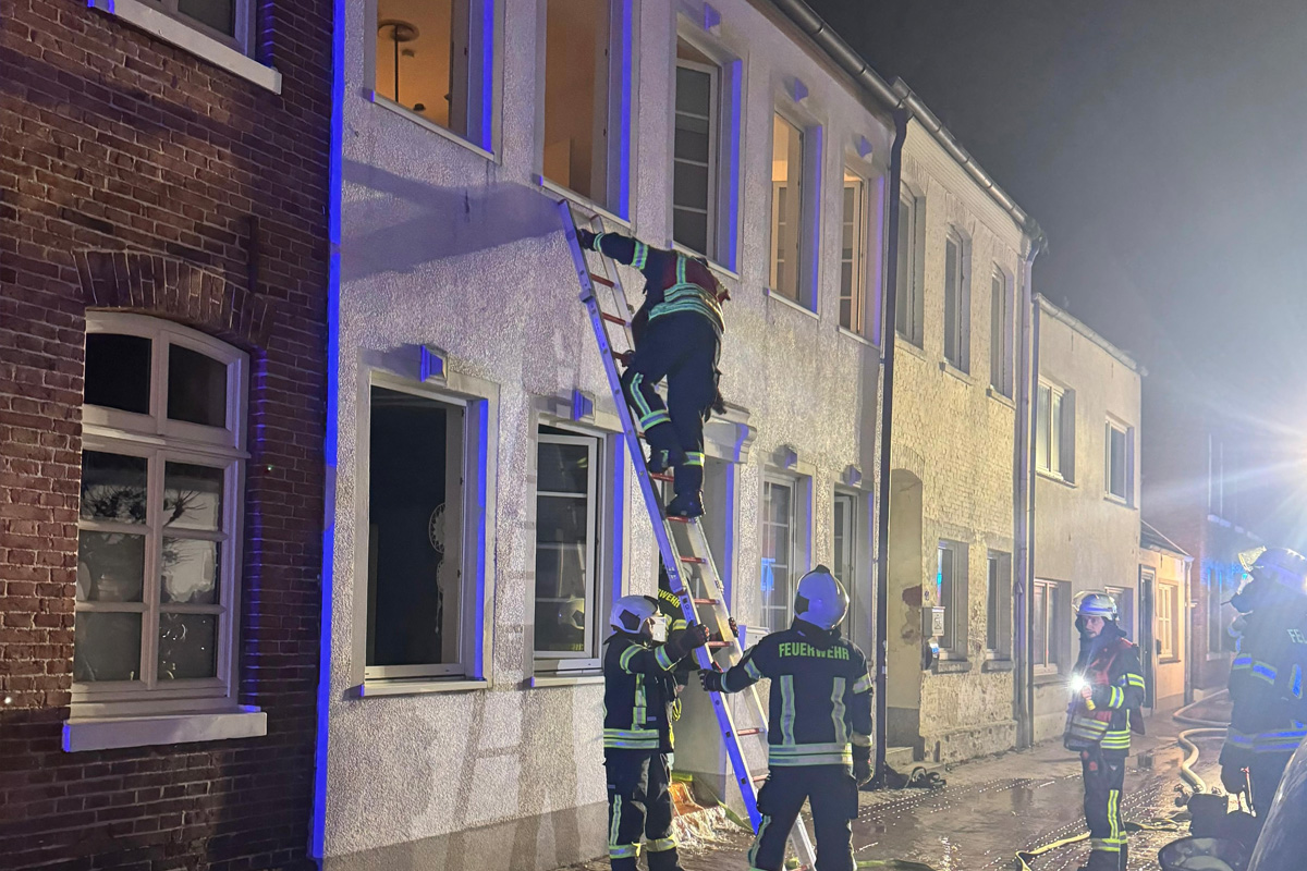Die Feuerwehr rettete zwei Menschen über tragbare Leitern. (Bildquelle: Freiwillige Feuerwehr Aurich)