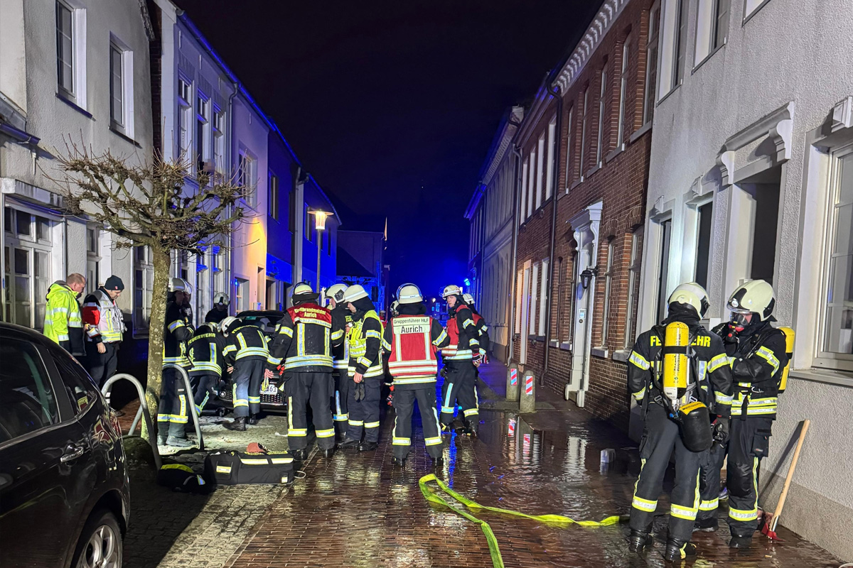 Ein Schmorbrand in einem Reihenhaus in der Innenstadt von Aurich hat am Abend des 26.12.2025 einen Großeinsatz ausgelöst. Drei Menschen mussten aus dem Gebäude gerettet werden, das derzeit unbewohnbar ist. Der Brand wurde durch austretendes Wasser selbst gelöscht.