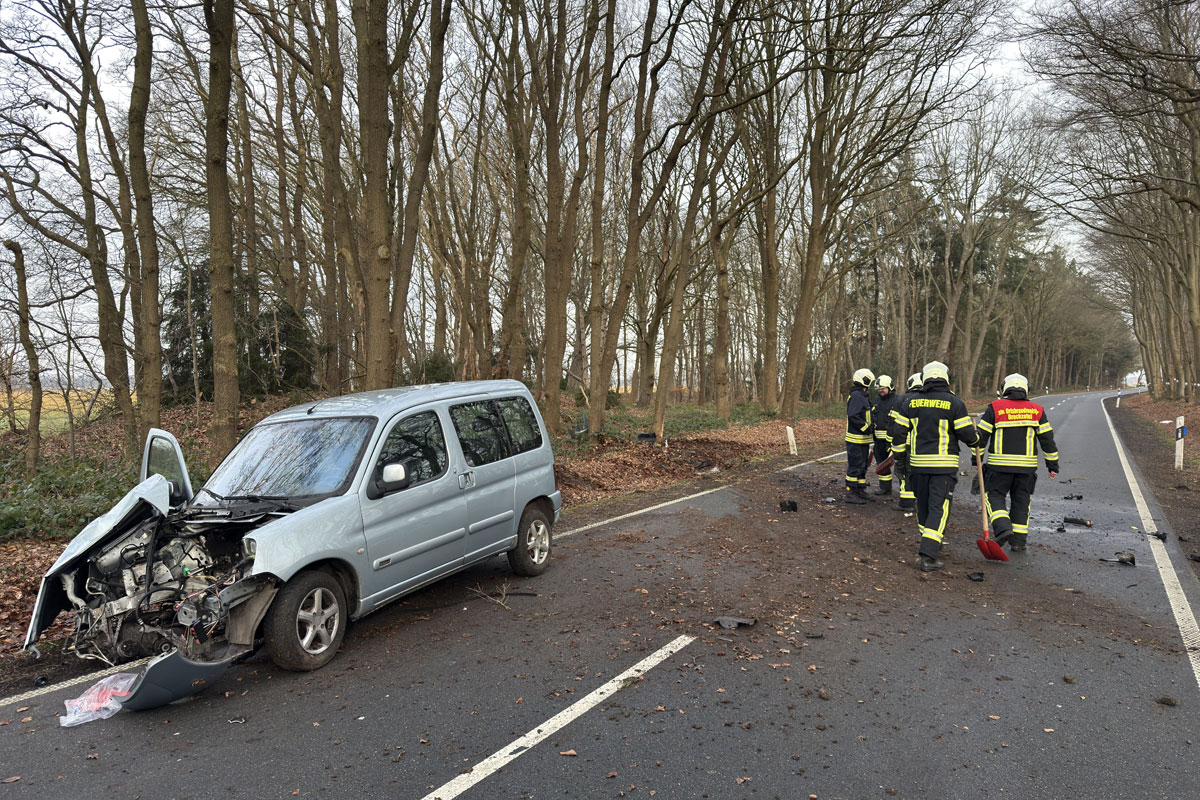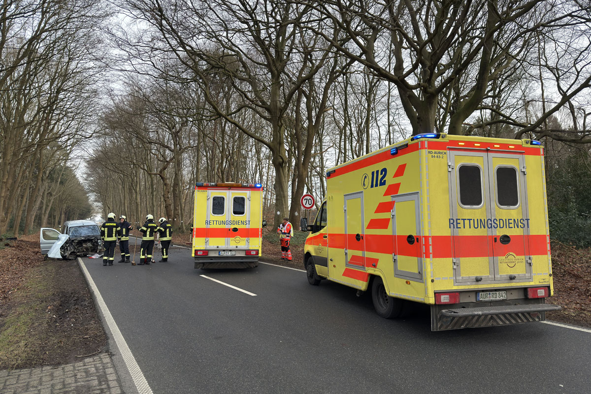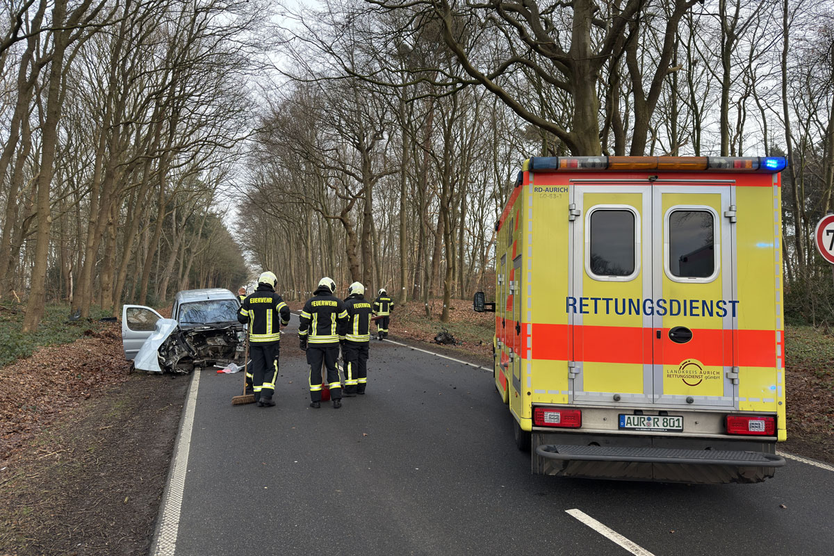 Am Mittwoch, 22.01.2026, kam es in den Mittagsstunden kurz nach der Einmündung zur Ringstraße zu einem schweren Verkehrsunfall auf der Brockzeteler Straße in Aurich-Brockzetel. Ein Pkw kam von der Fahrbahn ab und kollidierte mit einem Baum.