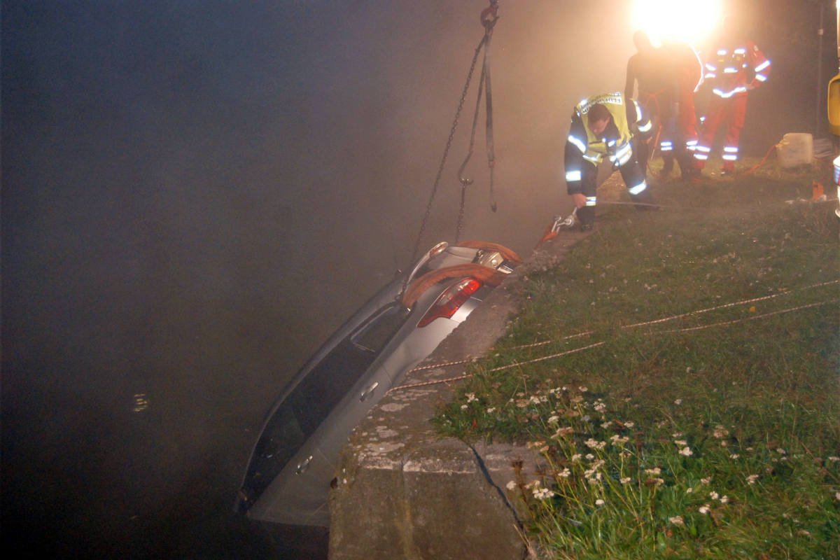 Auto landet in Fluss und Fahrerin geht erstmal nach Hause