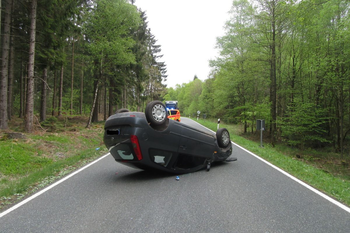 Ein 27-Jähriger aus Boffzen befuhr mit seinem Pkw Ford eine Linkskurve in Richtung Neuhaus und kam dabei aus bislang ungeklärter Ursache von der Fahrbahn ab. Der Pkw überschlug sich und kam auf der Fahrbahn zum Liegen. Der Fahrzeugführer wurde dabei schwer verletzt.