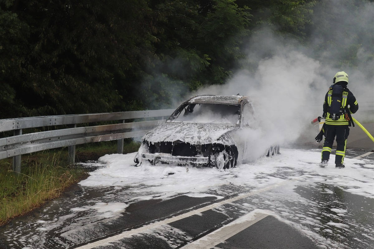 Ein schwarzer 3er BMW, mit dem ein 34-Jähriger auf der B 64 in Fahrtrichtung Höxter unterwegs war, hatte gegen 11.15 Uhr während der Fahrt aus bislang unbekannten Gründen Feuer gefangen. Der Fahrer konnte den Wagen in Höhe der Abfahrt zur L 954 noch in einer Nothaltebucht abstellen und unverletzt aussteigen.