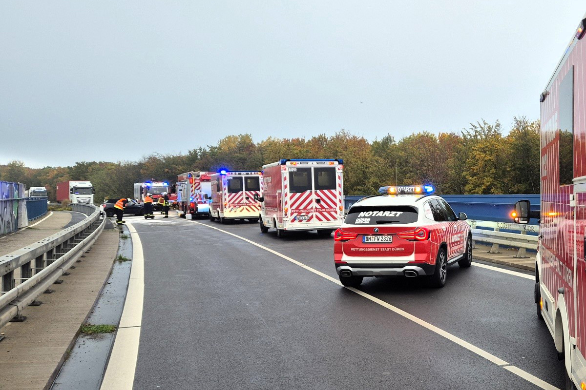 Die Feuerwehr Düren war mit den Löschgruppen Gürzenich und Derichsweiler sowie der Hauptwache und der Führungsunterstützungsgruppe im Einsatz. Sie stellte den Brandschutz sicher, sicherte die Fahrzeugbatterien und nahm auslaufende Betriebsstoffe auf. Insgesamt waren 32 Feuerwehrkräfte vor Ort. Auch ein Notarzteinsatzfahrzeug und drei Rettungswagen waren im Einsatz.
