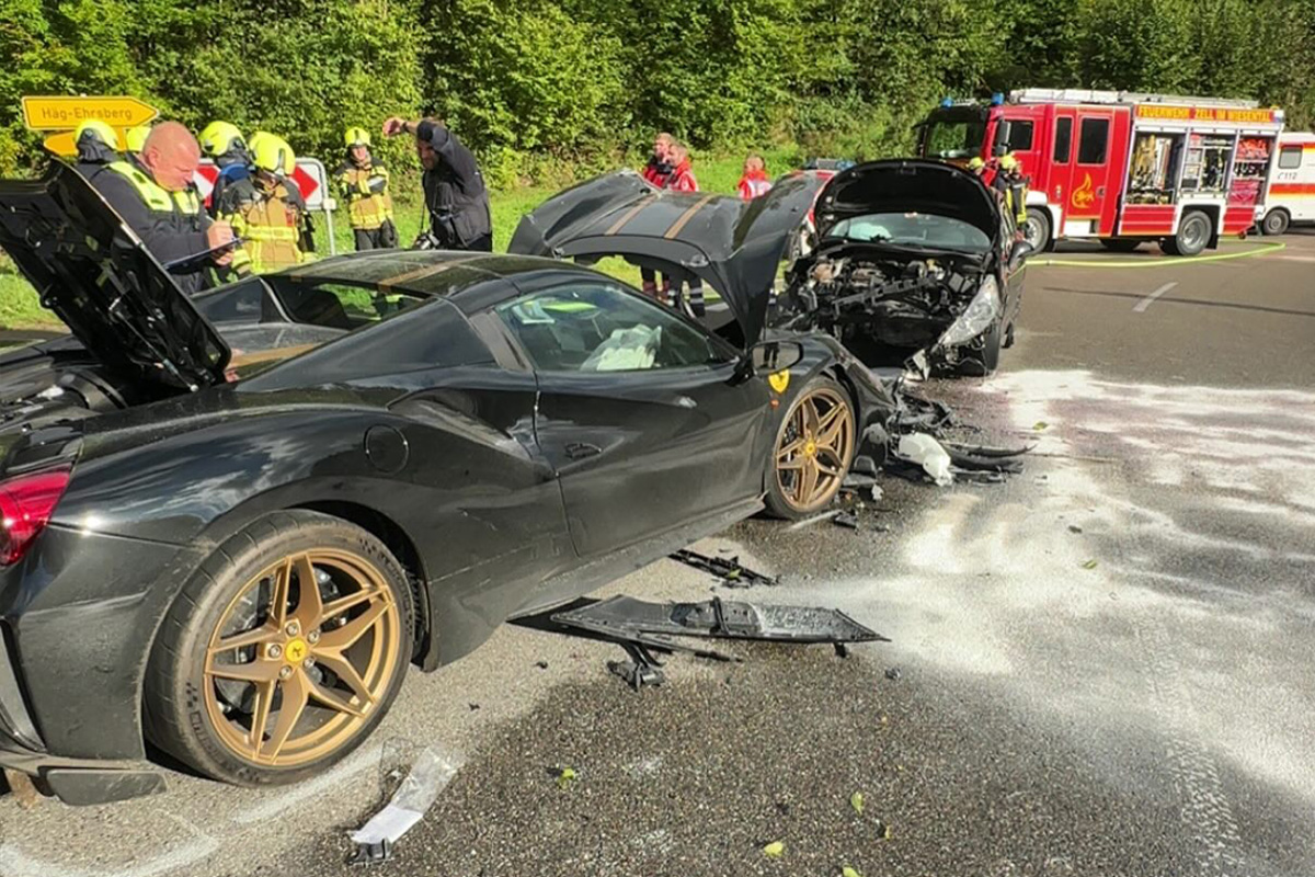 Auf der B317 bei Zell im Wiesental kam es am Samstagnachmittag zu einer Frontalkollision zwischen einem Ferrari und einem Peugeot. Alle sechs Insassen beider Fahrzeuge wurden schwer verletzt, ein Mann musste per Rettungshubschrauber nach Freiburg geflogen werden. Die Polizei sucht Zeugen, die zuvor eine Gruppe von Ferraris im Schwarzwald bemerkt haben.