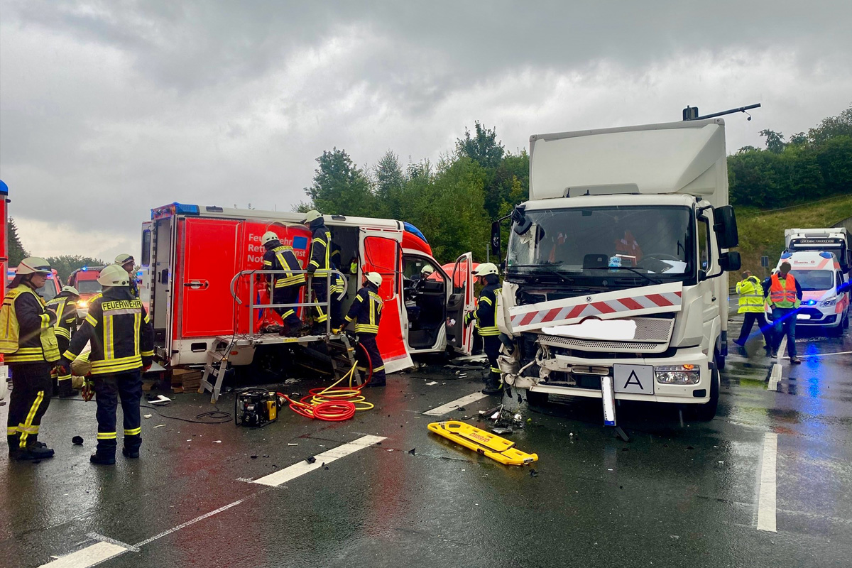 B480 Olsberg NW – Vier Verletzte nach schwerem Unfall von Rettungswagen und Lkw